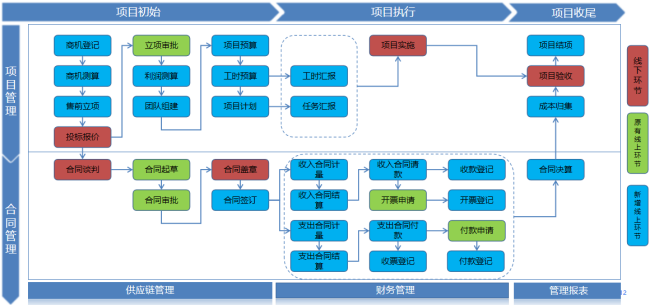 本项目基于化信中心整体经营管控视角展开顶层设计,全面覆盖了咨询、情报、化学品合规、传媒、科技文献、物业租赁等彼此差异较大的业务场景,搭建了以项目为核心、以合同为主线、与财务各模块天然打通的一体化平台,实现端到端、全周期、业财一体的精细化管理,有效推动了化信中心整体内控水平和管理水平提升。