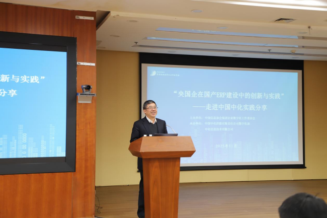 2025年11月30日,由中国信息协会数委会主办,中国中化数字化部及中化信息承办的“央国企国产ERP创新实践——走进中国中化实践分享会”在北京中国化工大厦成功召开。本次会议汇聚100余位央国企及生态伙伴代表,共同探讨国产ERP在复杂生产制造、研产一体化等场景中的创新应用与实施路径。